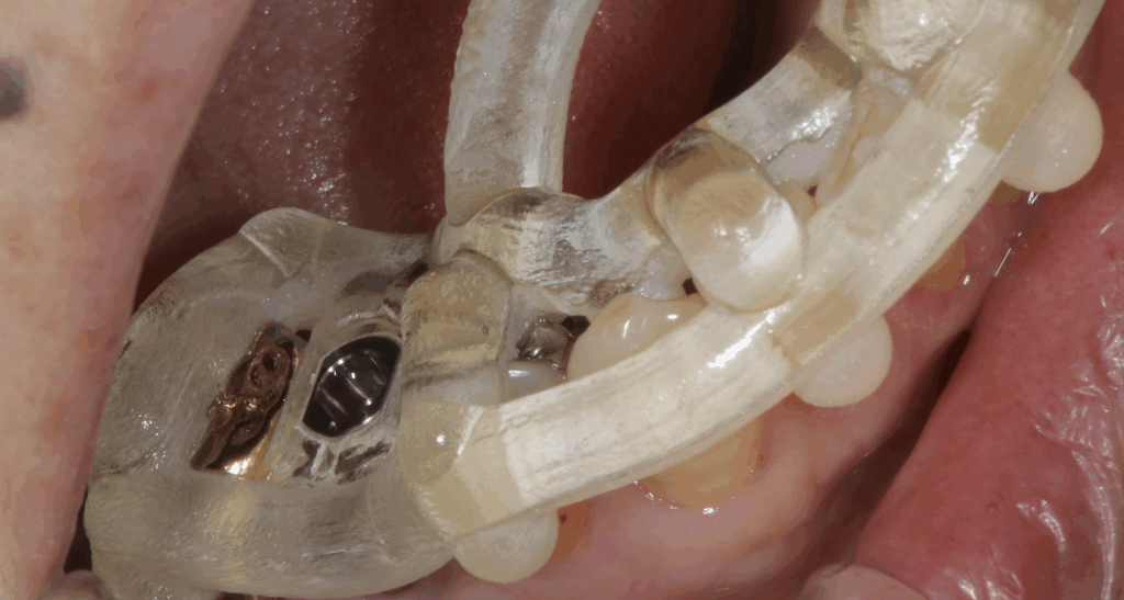 「サージカルステント」とはインプラントの埋入位置や角度を正確にガイドするための装置です。当院では、有名技工所と連携して最終的にどのような被せ物が入るのかをコンピュータ上でシミュレーションして作成します。そのため、1ミリの誤差もないインプラント治療が可能になります。